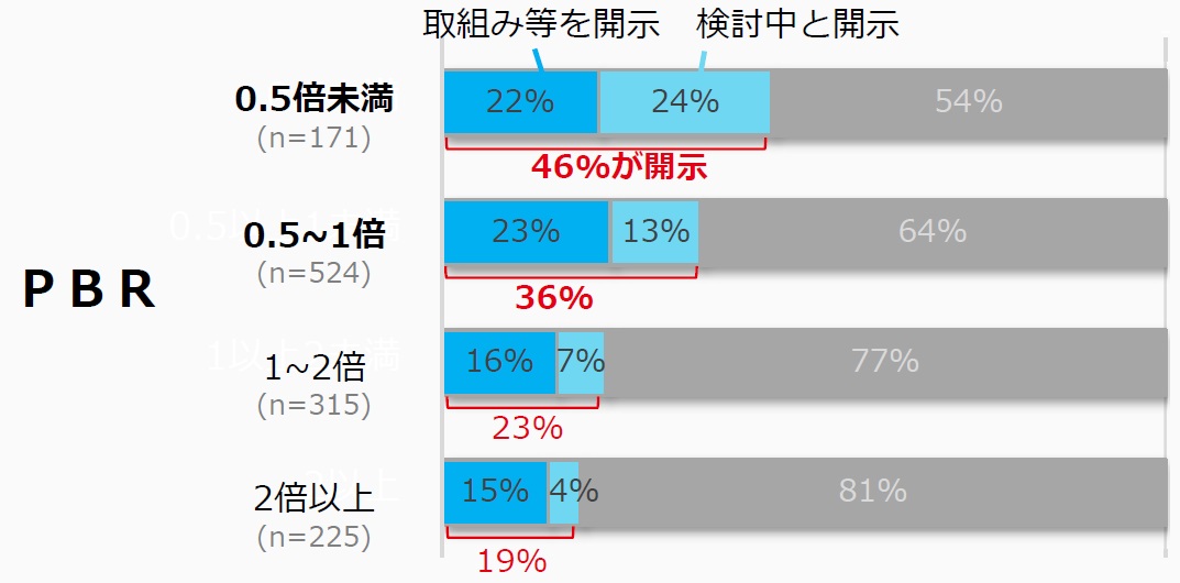 とりわけ、PBRが高い企業では、相対的に開示が進んでいない状況です。