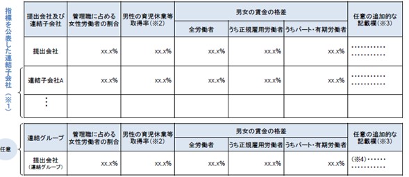 (※4)連結グループで記載する際に、海外子会社を含めた指標を記載するなど女性活躍推進法等と定義が異なる場合には、その指標の定義を記載する