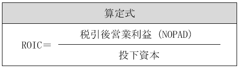 事業に投下された有利子負債と株主資本に対してどれだけの「税引後営業利益」が創出されているかを示す指標 |