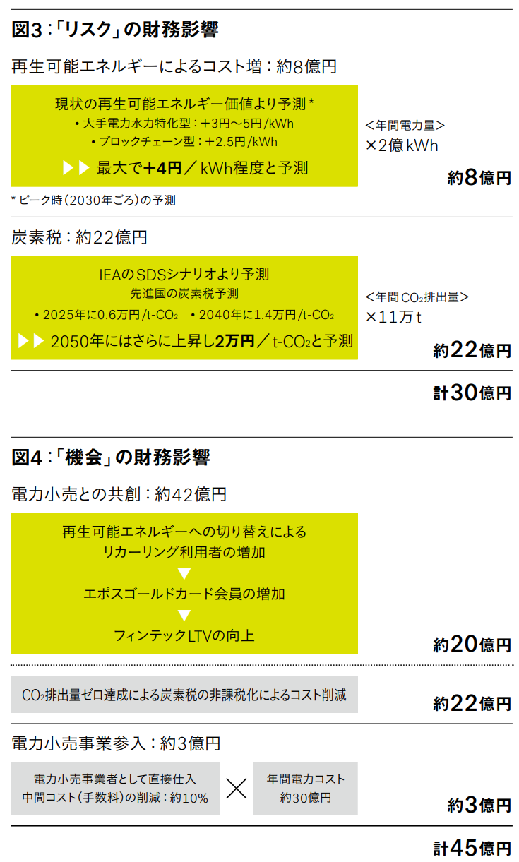丸井グループは、リスク・機会の分析結果を金額で開示しています。