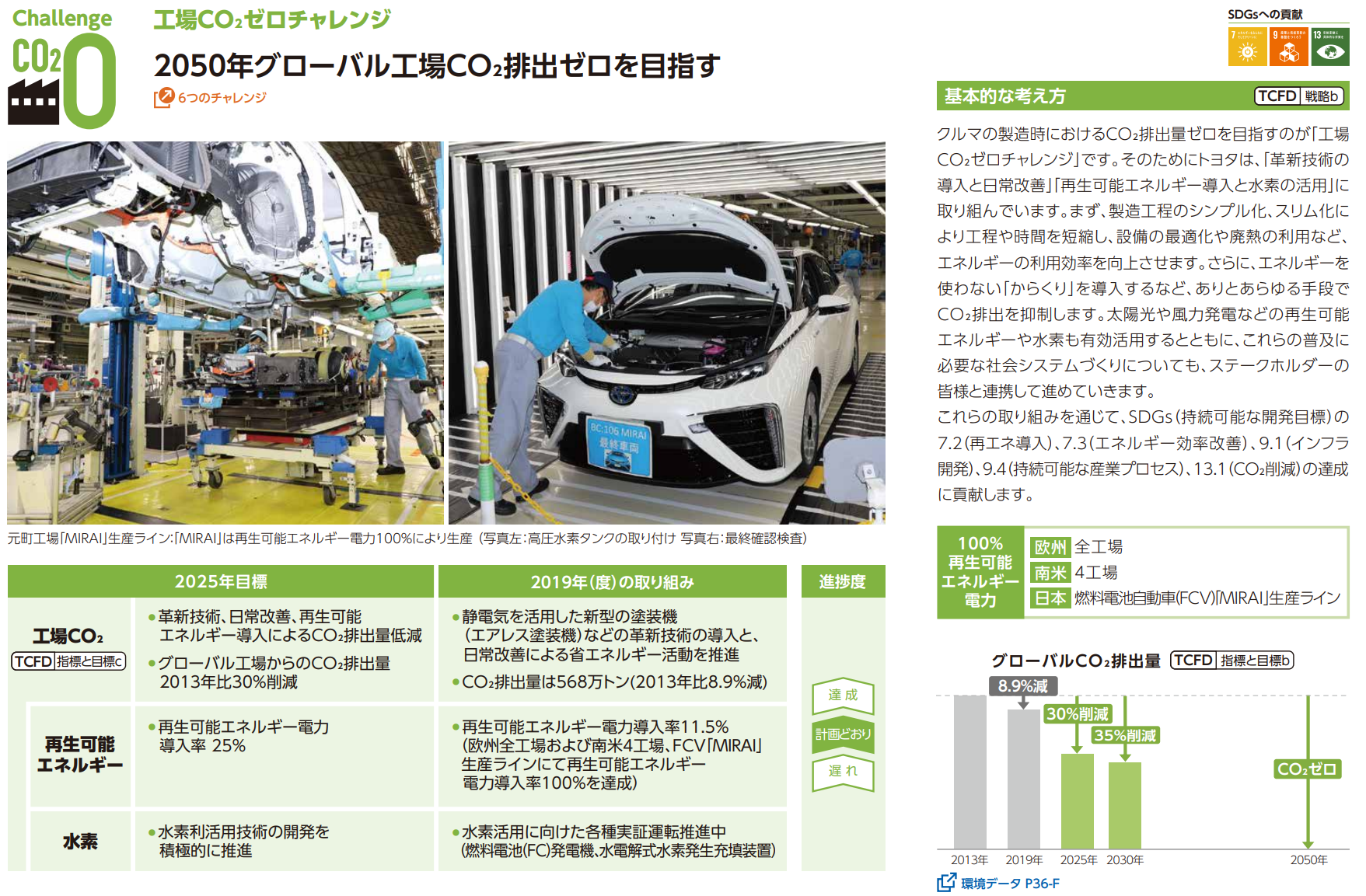トヨタ自動車は、2050年の環境長期目標、そのマイルストーンである2030年目標、5か年計画の2025年目標を設定し、単年ごとの取り組みと目標に対する進捗を開示しています。