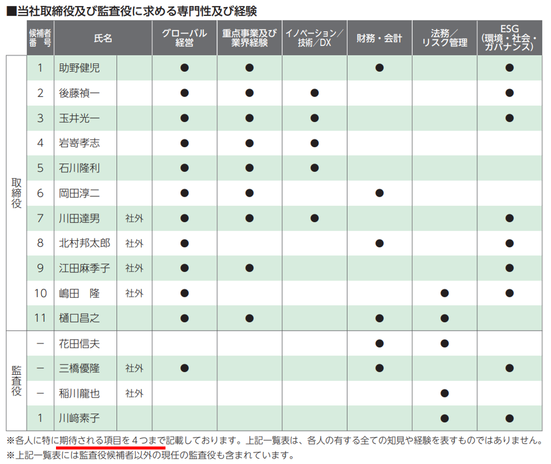 なお、上記のとおり、栗田工業は監査役会に求めるスキルを文章で説明しています(赤枠で囲んだ部分)。