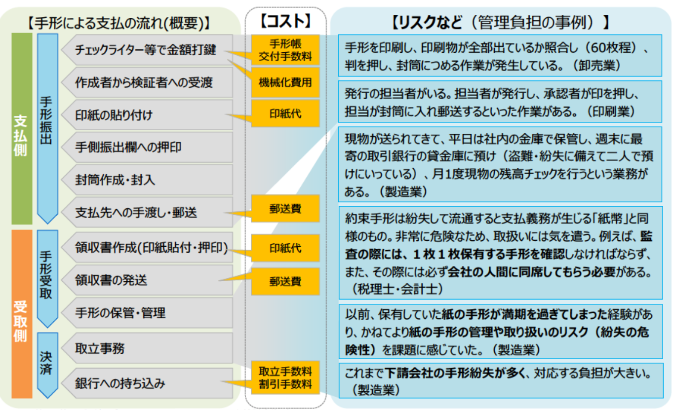 本報告書の調査によると、手形取引には次のような問題点があることが指摘されています。