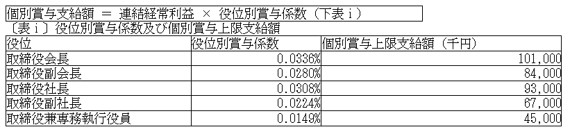 1)5億4千万円、2)下表ⅰに役位別に定める個別賞与上限支給額に本有価証券報告書提出時における役位毎の員数を乗じて合計した額、のいずれか少ない額を上限とします。