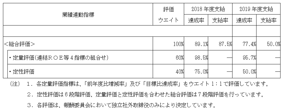 5.2018年度中に支給された社長の役員賞与における2017年度評価内容、並びに2019年度中に支給された社長の役員賞与における2018年度評価内容は、以下のとおりです。なお、2019年度の評価方法は原則同様です。
