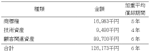 ・取得原価の大部分がのれん以外の無形固定資産に配分された場合には、のれん以外の無形固定資産に配分された金額及びその主要な種類別の内訳並びに全体及び主要な種類別の加重平均償却期間