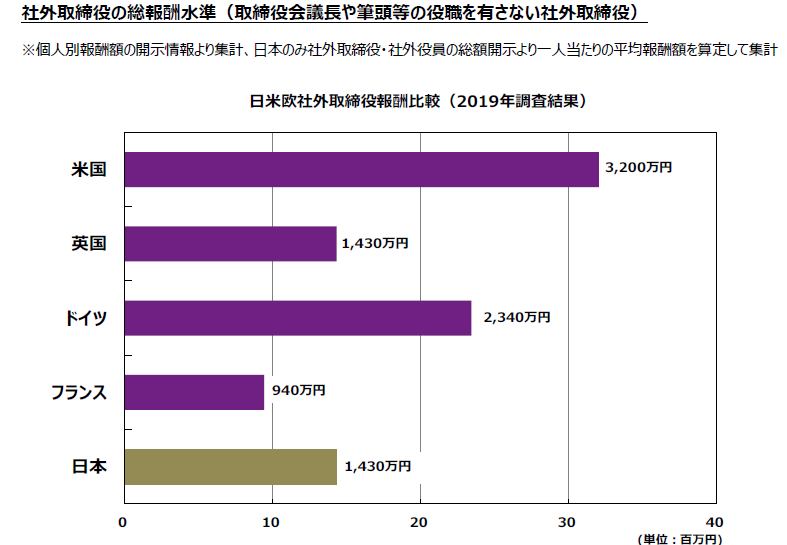 欧米企業に比べ日本企業の取締役の報酬水準は低いと言われているが、社外取締役の報酬は既にグローバル水準となっていることが・・・